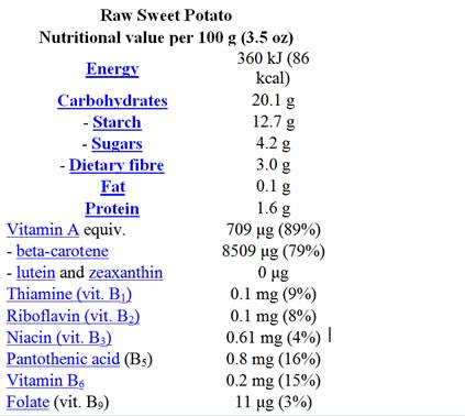 1- Nếu các bà nếu có sự nhạy cãm đến huyết áp cao khi dùng các thưc vật, thì không nên dùng sweet potato (Velloso A et al., 2004)