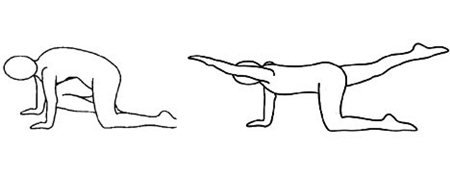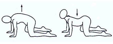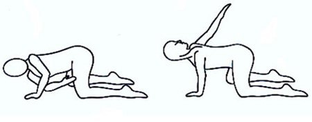 Ở tư thế bò, hai tay, 2 đầu gối chạm đất. Mở rộng hai cánh tay bằng vài, bàn tay hướng về phía trước.