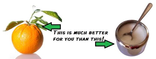 3. Ăn ít , ăn cân bằng và biết lựa chọn. Thí dụ không ai cấm bạn ăn một quả chuối mỗi ngày, miễn đừng ăn luôn cả nải chuối. Giữa một quả cam và một ly nước cam thì nên chọn…?