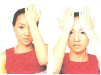 Lòng bàn tay chụm lại xoa mạnh ngang khắp vùng trán. Nhớ xoa bằng bàn tay trái trước, tay phải sau, mỗi tay xoa 30 lần.