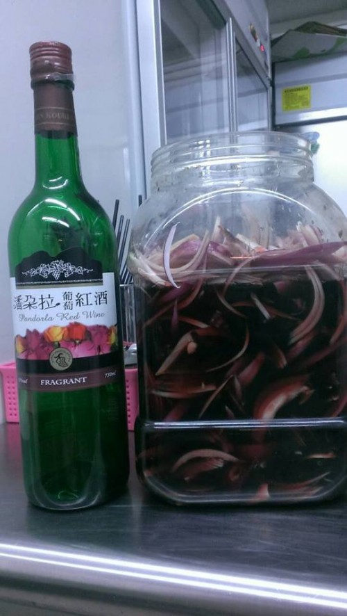– Ngâm theo tỷ lệ: 3 củ hành tây + 750 ml rượu vang đỏ.