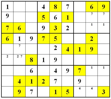 E1(3,5), E2(3,5,7), E3(3,5) => E1E2E3 là 1 bộ ba ô Sudoku trị 3, 5, 7 trên hàng E và trong khối 4