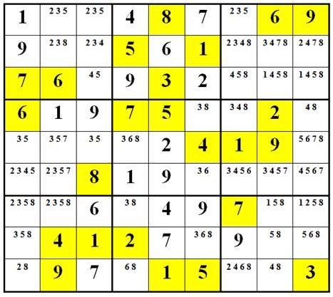 => E4(6,8), E9(6,8) là 1 bộ 2 ô Sudoku trị 6 và 8