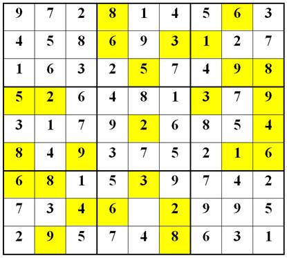 => B2 = 5 => A2 = 7 => A9 = 3 => I8 = 3