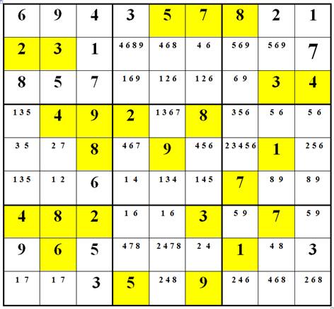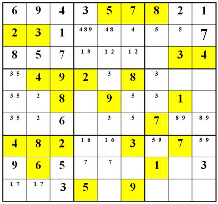 – Suy ra các số phải điền vào các ô, các trị khả dụng đầu tiên, các bộ 2 ô Sudoku nếu có.