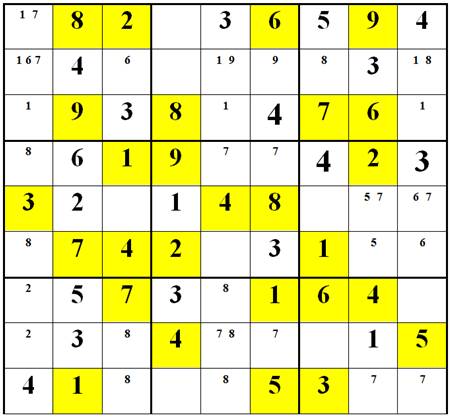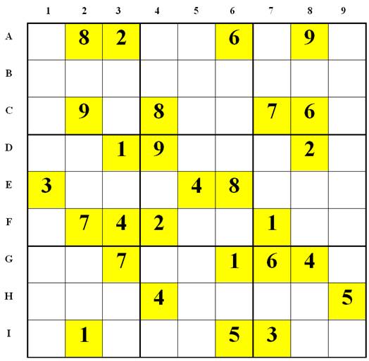– Suy ra các số phải điền vào các ô, các trị khả dụng đầu tiên,