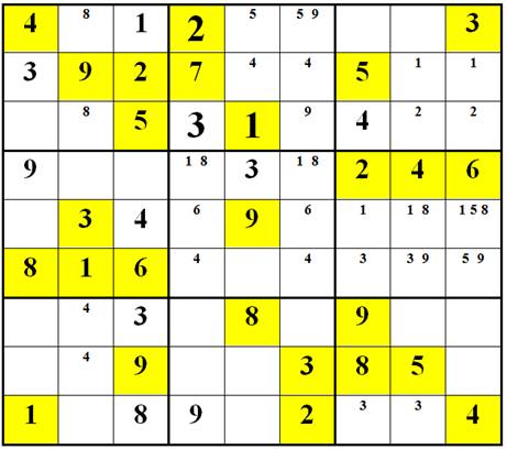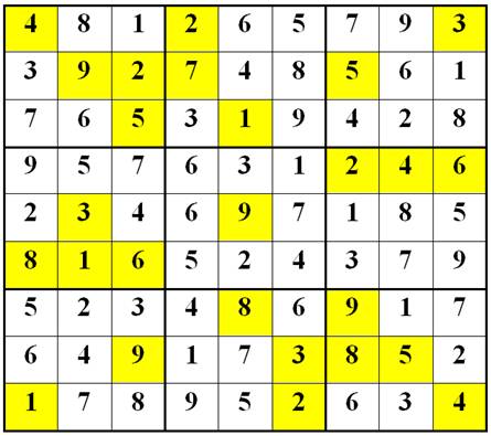 – Suy ra các số phải điền vào các ô, các trị khả dụng đầu tiên,