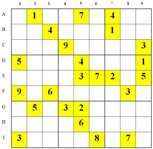 => B9 = 7 => A9 = 9 => B2 = 9 => H3 = 9