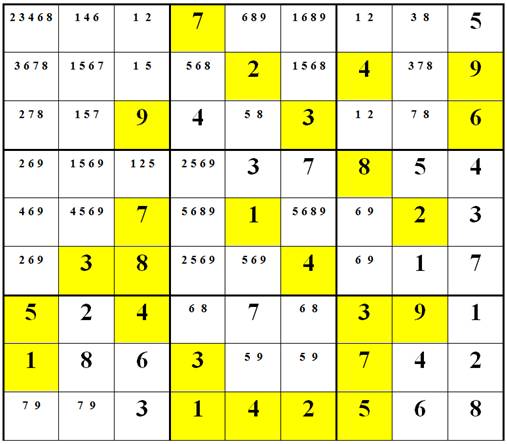 => I3 = 3 => I1(7,9) I2(7,9) là bộ 2 ô Sudoku trị 7, 9.