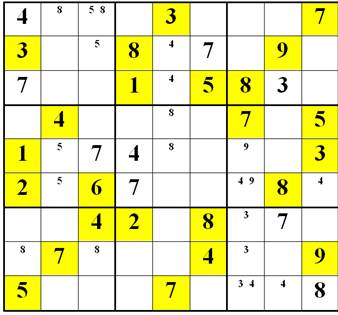 – Suy ra các số phải điền vào các ô, các trị khả dụng đầu tiên, các bộ 2 ô Sudoku nếu có.