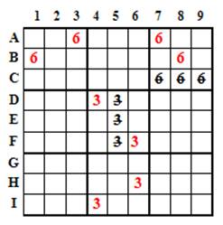 Trị khẳng định 6 trên 2 hàng A và B cũng là trị khẳng định trong khối 1 (có nghĩa là khối 1 chỉ có 2 ô A3 và B1 là có trị khả dụng 6)