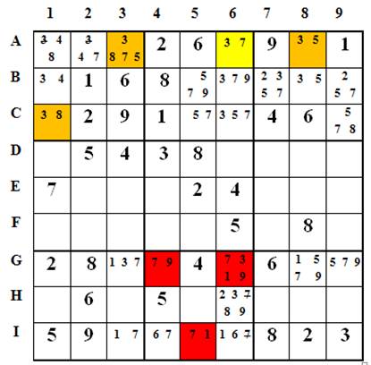 Thí dụ 2: Xét khung Sudoku dưới đây: