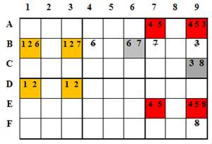 Suy ra: mọi ô trống trên hàng B, khác B1, B3, B6 không thể nhận 6 và 7 làm trị khả dụng.