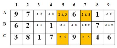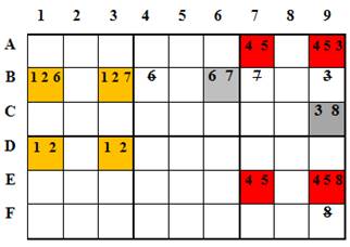 Suy ra: mọi ô trống trên hàng B, khác B1, B3, B6 không thể nhận 6 và 7 làm trị