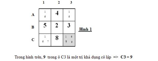 c) Trong 1 thành phần Sudoku, một trị khả dụng gọi là cô lập khi nó chỉ xuất hiện 1