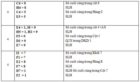 SLH Quy luật Điền số liên hoàn, áp dụng Q2X