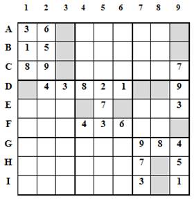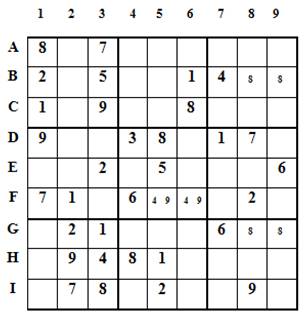 và 5 => 9 phải hiện diện trên Hàng E trong khối 6 => E7 = 9