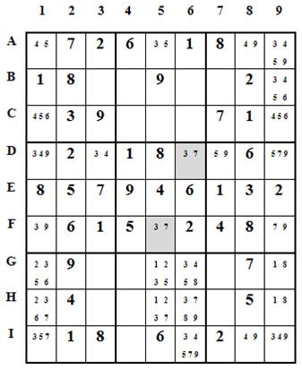 Khi 2 chuỗi điền số phát xuất từ 1 ô chỉ có 2 trị khả dụng gặp nhau ở cùng 1 ô với cùng 1 trị khả dụng của ô đó, thì trị khả dụng nầy chính là trị thật sự của ô đó.